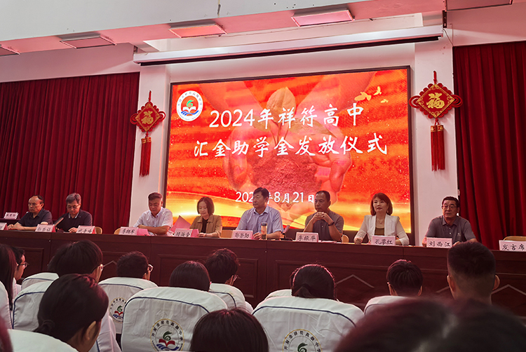 On Aug 21, 2024, the ninth phase of the "Huijin Scholarship" was distributed at Xiangfu Senior High School in Kaifeng City. Yan Bohan, deputy head of Xiangfu District, Li Yongjun, chairman of the Federation of Industry and Commerce, Guo Rongxun, chairman of Henan Huijin Group, Kong Panhong, CEO and president of Henan Huijin Group, Xiangfu High School leaders, students receiving aid and parent representatives attended the donation ceremony. Chairman Guo Rongxun awarded 5,000 yuan in cash to each of the 20 outstanding graduates of the class of 2024 and shared the corporate culture of Huijin Group with everyone.