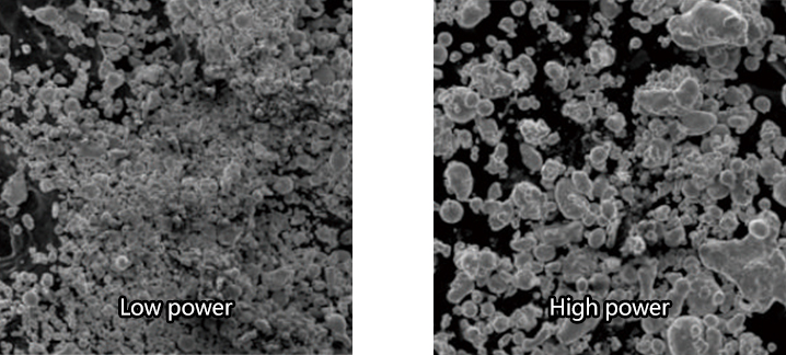 The distribution of the product under high and low magnification microscopes, it shows the morphology of the powder.