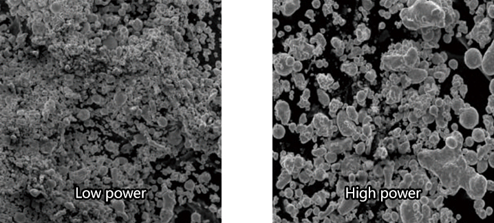 The distribution of the product under high and low magnification microscopes, it shows the morphology of the powder.