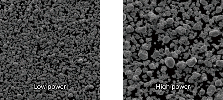 The distribution of the product under high and low magnification microscopes, it shows the morphology of the powder.