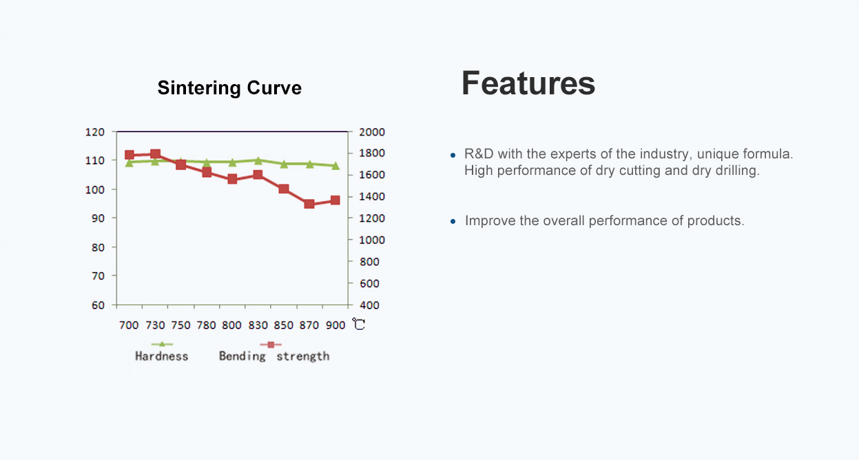Widely used in ceramic dry cutting saw blades, high-grade segments, medium-diameter saw blades, gang saws, diamond wire saws, wet engineering drills and other products that have high requirements for holding force on diamonds.